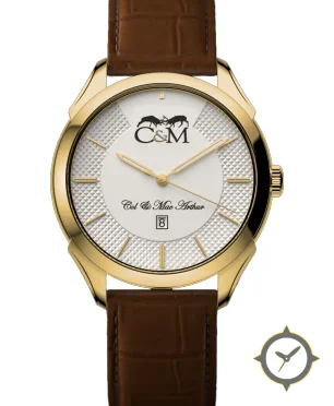Eine Dress-Uhr mit einem markanten 45.5mm Auftritt am Handgelenk, gefertigt aus Gold mit einem Zifferblatt in weiß und einer besonderen "guilloché outer hobnail with smooth central section"-Oberfläche.