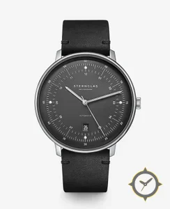 Eine Minimalistisch-Uhr mit einem vielseitigen 38.5mm Gehäuse, das an fast jedes Handgelenk passt, gefertigt aus Edelstahl mit einem Zifferblatt in grau und einer besonderen "matte, slightly grained/sandblasted finish"-Oberfläche.