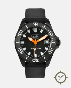 Eine Taucheruhr-Uhr mit einem vielseitigen 39mm Gehäuse, das an fast jedes Handgelenk passt, gefertigt aus Edelstahl mit einem Zifferblatt in schwarz und einer besonderen "matte"-Oberfläche.