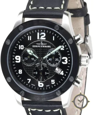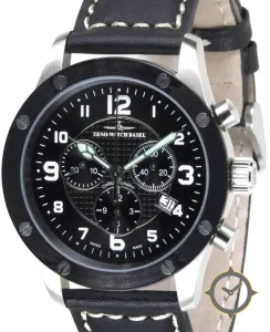 Eine Pilot-Uhr gefertigt aus Edelstahl mit einem Zifferblatt in schwarz und einer besonderen "textured (waffle/grille)"-Oberfläche.