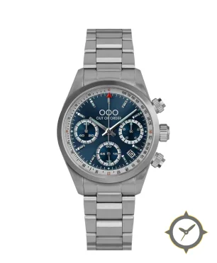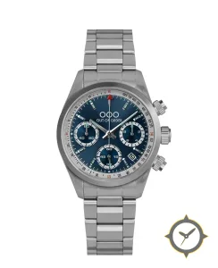 Eine Chronograph-Uhr mit einem vielseitigen 39.5mm Gehäuse, das an fast jedes Handgelenk passt, gefertigt aus Edelstahl mit einem Zifferblatt in blau und einer besonderen "sunburst"-Oberfläche.
