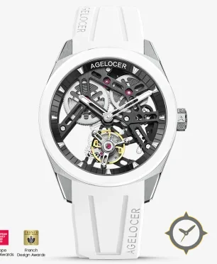Eine Skelett-Uhr mit einem vielseitigen 38mm Gehäuse, das an fast jedes Handgelenk passt, gefertigt aus Edelstahl mit einem Zifferblatt in schwarz und einer besonderen "open-work / skeleton"-Oberfläche.