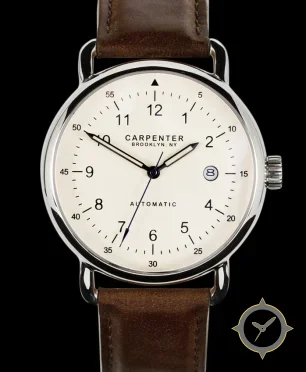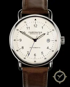 Eine Field-Uhr mit einem 32mm Gehäuse im Vintage-Stil gefertigt aus Edelstahl mit einem Zifferblatt in weiß und einer besonderen "matte"-Oberfläche.