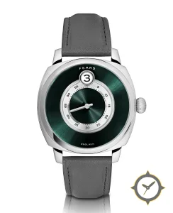 Eine Dress-Uhr mit einem vielseitigen 40mm Gehäuse, das an fast jedes Handgelenk passt, gefertigt aus Edelstahl mit einem Zifferblatt in grün und einer besonderen "sunburst / radial brushed"-Oberfläche.