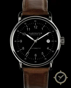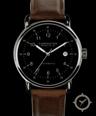 Eine Dress-Uhr mit einem 35.5mm Gehäuse im Vintage-Stil gefertigt aus Edelstahl mit einem Zifferblatt in schwarz und einer besonderen "matte"-Oberfläche.