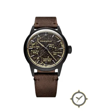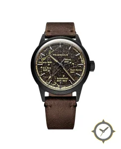 Eine Field-Uhr gefertigt aus Edelstahl mit einem Zifferblatt in braun und einer besonderen "speckled/granular (sand-like)"-Oberfläche.