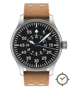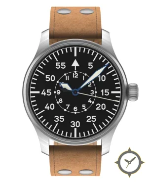 Eine Pilot-Uhr mit einem vielseitigen 41mm Gehäuse, das an fast jedes Handgelenk passt, gefertigt aus Edelstahl mit einem Zifferblatt in schwarz und einer besonderen "matte"-Oberfläche.