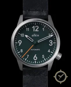 Eine Pilot-Uhr mit einem vielseitigen 39mm Gehäuse, das an fast jedes Handgelenk passt, gefertigt aus Edelstahl mit einem Zifferblatt in grün und einer besonderen "matte"-Oberfläche.