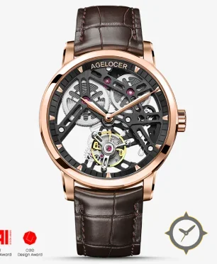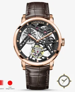 Eine Skelett-Uhr mit einem 36.5mm Gehäuse im Vintage-Stil gefertigt aus Gold mit einem Zifferblatt in schwarz und einer besonderen "open-work / skeleton"-Oberfläche.