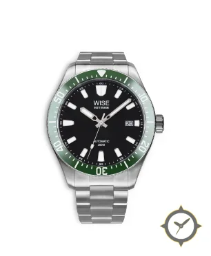 Eine Taucheruhr-Uhr mit einem vielseitigen 38mm Gehäuse, das an fast jedes Handgelenk passt, gefertigt aus Edelstahl mit einem Zifferblatt in schwarz und einer besonderen "matte"-Oberfläche.