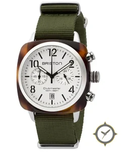 Eine Chronograph-Uhr mit einem 35mm Gehäuse im Vintage-Stil gefertigt aus Edelstahl mit einem Zifferblatt in weiß und einer besonderen "matte lacquer"-Oberfläche.
