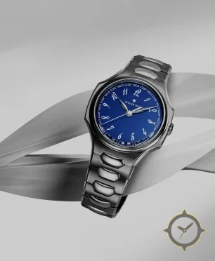 Eine Sport-Uhr mit einem markanten 42.5mm Auftritt am Handgelenk, gefertigt aus Edelstahl mit einem Zifferblatt in blau und einer besonderen "lacquer"-Oberfläche.