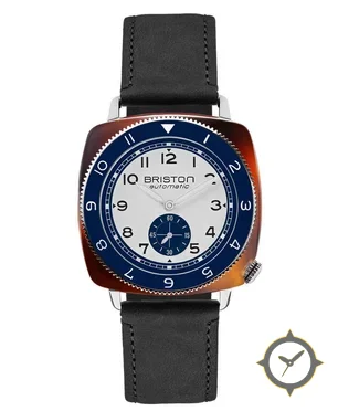 Eine Vintage-Uhr mit einem 36.5mm Gehäuse im Vintage-Stil gefertigt aus Harz mit einem Zifferblatt in weiß und einer besonderen "matte"-Oberfläche.