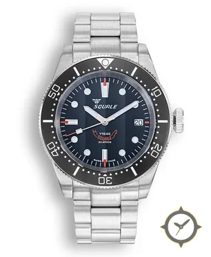 Eine Taucheruhr-Uhr mit einem markanten 43.5mm Auftritt am Handgelenk, gefertigt aus Edelstahl mit einem Zifferblatt in marineblau und einer besonderen "sunburst"-Oberfläche.