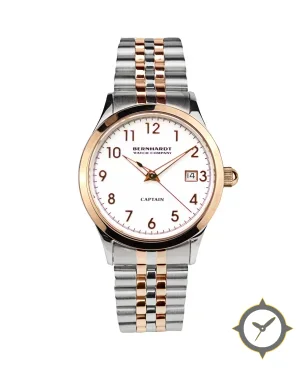 Eine Dress-Uhr mit einem 35.5mm Gehäuse im Vintage-Stil gefertigt aus Edelstahl mit einem Zifferblatt in weiß und einer besonderen "matte"-Oberfläche.