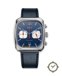 Eine Chronograph-Uhr mit einem markanten 42mm Auftritt am Handgelenk, gefertigt aus Edelstahl mit einem Zifferblatt in marineblau und einer besonderen "lacquer"-Oberfläche.