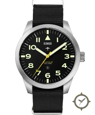 Eine Pilot-Uhr mit einem vielseitigen 40mm Gehäuse, das an fast jedes Handgelenk passt, gefertigt aus Edelstahl mit einem Zifferblatt in schwarz und einer besonderen "matte"-Oberfläche.