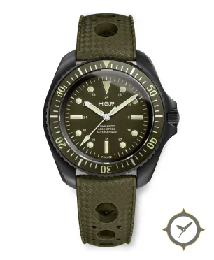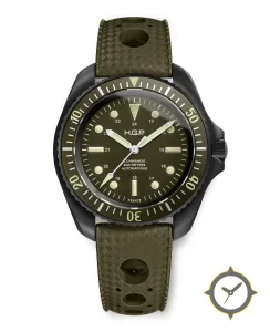 Eine Taucheruhr-Uhr mit einem vielseitigen 39mm Gehäuse, das an fast jedes Handgelenk passt, gefertigt aus Edelstahl mit einem Zifferblatt in grün und einer besonderen "matte"-Oberfläche.