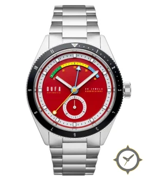 Eine GMT-Uhr mit einem vielseitigen 40.5mm Gehäuse, das an fast jedes Handgelenk passt, gefertigt aus Edelstahl mit einem Zifferblatt in rot und einer besonderen "smooth lacquer"-Oberfläche und einer echten GMT-Funktion, mit der du eine zweite Zeitzone verfolgen kannst.
