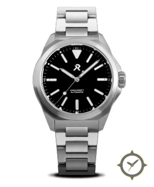 Eine Sport-Uhr mit einem markanten 44mm Auftritt am Handgelenk, gefertigt aus Edelstahl mit einem Zifferblatt in schwarz und einer besonderen "matte"-Oberfläche.