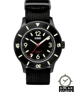 Eine Taucheruhr-Uhr mit einem markanten 43mm Auftritt am Handgelenk, gefertigt aus Edelstahl mit einem Zifferblatt in schwarz und einer besonderen "matte"-Oberfläche.