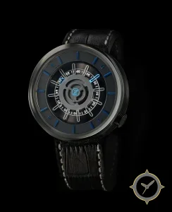 Eine Skelett-Uhr mit einem markanten 42mm Auftritt am Handgelenk, gefertigt aus Edelstahl mit einem Zifferblatt in schwarz und einer besonderen "brushed-sunburst"-Oberfläche.