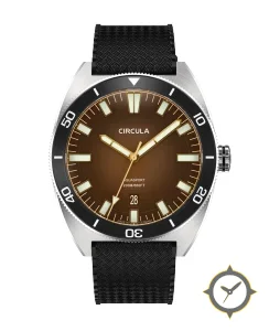 Eine Taucheruhr-Uhr mit einem vielseitigen 39mm Gehäuse, das an fast jedes Handgelenk passt, gefertigt aus Edelstahl mit einem Zifferblatt in braun und einer besonderen "sunburst"-Oberfläche.