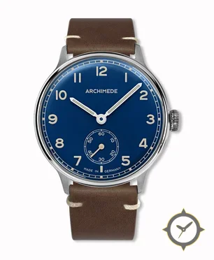 Eine Vintage-Uhr mit einem vielseitigen 39mm Gehäuse, das an fast jedes Handgelenk passt, gefertigt aus Edelstahl mit einem Zifferblatt in blau und einer besonderen "matte"-Oberfläche.