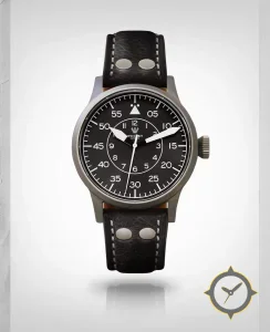 Eine Pilot-Uhr mit einem vielseitigen 41mm Gehäuse, das an fast jedes Handgelenk passt, gefertigt aus Edelstahl mit einem Zifferblatt in schwarz und einer besonderen "matte"-Oberfläche.