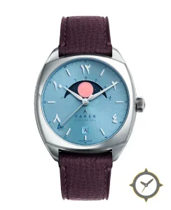 Eine Dress-Uhr mit einem markanten 42.5mm Auftritt am Handgelenk, gefertigt aus Edelstahl mit einem Zifferblatt in türkis und einer besonderen "sunray-brushed"-Oberfläche und einer wunderschönen Mondphasenanzeige.