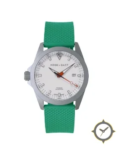 Eine Taucheruhr-Uhr mit einem markanten 42mm Auftritt am Handgelenk, gefertigt aus Titan mit einem Zifferblatt in weiß und einer besonderen "matte"-Oberfläche.