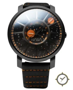 Eine Luftfahrt-Uhr mit einem markanten 51.5mm Auftritt am Handgelenk, gefertigt aus Edelstahl mit einem Zifferblatt in schwarz und einer besonderen "matte with raised radial spokes and small embossed dot/bubble texture"-Oberfläche.