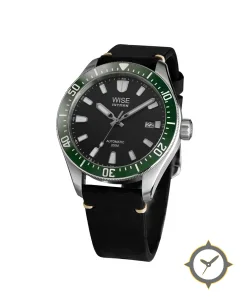 Eine Taucheruhr-Uhr mit einem vielseitigen 38mm Gehäuse, das an fast jedes Handgelenk passt, gefertigt aus Edelstahl mit einem Zifferblatt in schwarz und einer besonderen "matte"-Oberfläche.