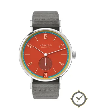 Eine Dress-Uhr mit einem 32mm Gehäuse im Vintage-Stil gefertigt aus Edelstahl mit einem Zifferblatt in rot und einer besonderen "matte"-Oberfläche.