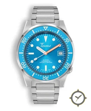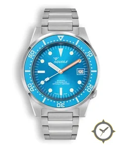 Eine Taucheruhr-Uhr mit einem markanten 42mm Auftritt am Handgelenk, gefertigt aus Edelstahl mit einem Zifferblatt in türkis und einer besonderen "sunburst"-Oberfläche.