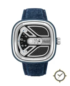 A Sports watch with a bold 57mm presence on the wrist, crafted from stainless steel featuring a black dial with a unique multi-layered with woven/carbon-like inserts and brushed metal surfaces finish.