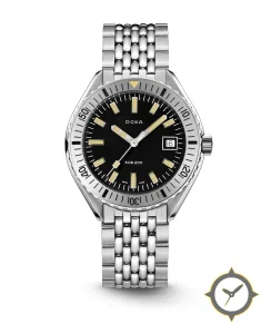 A Dive watch with a bold 41.5mm presence on the wrist, crafted from stainless steel featuring a black dial with a unique matte finish.