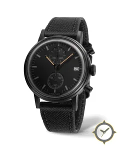 A Chronograph watch with a bold 44mm presence on the wrist, crafted from Coating featuring a black dial with a unique matte finish.
