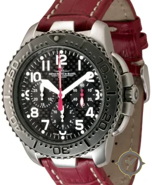 A Chronograph watch, crafted from stainless steel featuring a black dial with a unique carbon-fiber finish.