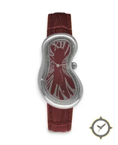 A Dress watch with a vintage-inspired 24mm case, crafted from stainless steel featuring a crimson dial with a unique smooth lacquer finish finish.