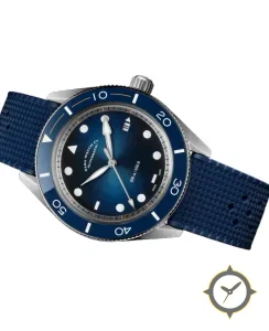 A Dive watch with a bold 45mm presence on the wrist, crafted from stainless steel featuring a blue dial with a unique sunburst finish.