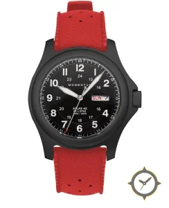 A Field watch with a versatile 39.5mm case, that suits most wrists, crafted from Coating featuring a black dial with a unique subtle sunburst (concentric brushing) finish.