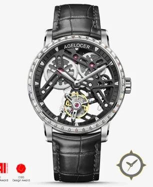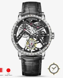 A Skeleton watch with a vintage-inspired 37.5mm case, crafted from stainless steel featuring a black dial with a unique skeleton/exposed movement finish.