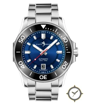 A Dive watch with a bold 42mm presence on the wrist, crafted from stainless steel featuring a blue dial with a unique sunburst finish.