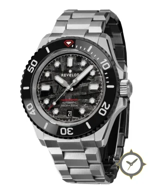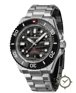 A Dive watch with a vintage-inspired 34.5mm case, crafted from stainless steel featuring a black dial with a unique meteorite-like striated texture finish.