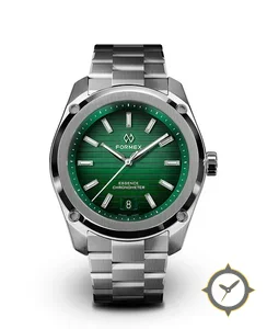 A Sports watch with a versatile 38.5mm case, that suits most wrists, crafted from stainless steel featuring a green dial with a unique horizontal-striped sunburst gradient finish.