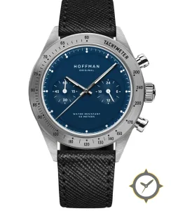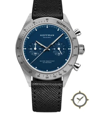 A Chronograph watch with a bold 44.5mm presence on the wrist, crafted from stainless steel featuring a blue dial with a unique sunburst finish.
