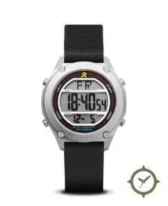A Digital watch with a bold 44.5mm presence on the wrist, crafted from titanium featuring a gray dial with a unique LCD finish.