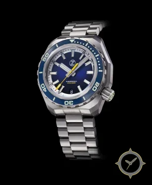 A Dive watch with a versatile 39mm case, that suits most wrists, crafted from stainless steel featuring a blue dial with a unique sunburst finish.