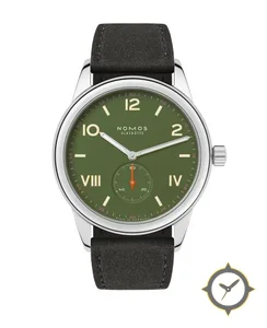 A Minimalist watch with a vintage-inspired 31.5mm case, crafted from stainless steel featuring a green dial with a unique matte lacquer finish.